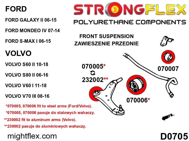 - For Volvo: The bush only fits the steel wishbone. We do not offer bushings for aluminum wishbones.