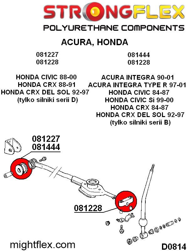 - D0814 Shifter stabilizer bushings d-b series Polyurethane Honda Civic CRX del Sol